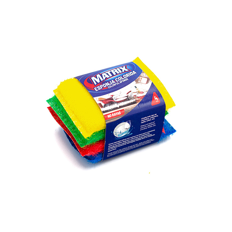 Esponjas multiuso para la limpieza resistente antiarañazos, fabricada en microfibra, espuma y nylon reutilizable para limpieza del hogar. Limpiador texturizado, suave y absorbente. La almohadilla de lavado Matrix® hace más que una esponja ordinaria, con una excelente absorción y el músculo para eliminar la suciedad y residuos de los alimentos secos. 1) Juego de 4 piezas. 2) Colores varios.